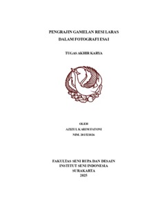 Tujuan dari penciptaan karya Pengrajin Gamelan Resi Laras Dalam Fotografi Esai adalah untuk memvisualisasikan proses pembuatan gamelan yang berada di Kabupaten Karanganyar melalui karya fotografi esai, sebagai arsip visual bagi Pengrajin Gamelan Haryanto Resi Laras dan masyarakat luas. Tak hanya itu, penciptaan karya ini juga dimaksudkan untuk mengetahui penataan cahaya yang sesuai. Objek penciptaan karya ini mencakup pengrajin gamelan dalam melakukan proses pembuatan gamelan dari tahap awal hingga tahap akhir. Penciptaan karya ini dilakukan untuk menambah arsip visual tentang pembuatan gamelan. Metode penciptaan karya yang digunakan meliputi beberapa tahap yaitu pengumpulan data, eksplorasi, eksperimentasi, pengerjaan karya, penyuntingan karya, dan penyajian karya. Proses pengumpulan data terdiri dari observasi, pemilihan spesifikasi lokasi untuk objek penciptaan dan proses wawancara, yang bertujuan untuk mendapat informasi langsung dari pemilik tempat, hal ini akan mempermudah proses selanjutnya yaitu eksplorasi. Proses eksplorasi, yaitu proses untuk menentukan objek penciptaan. Proses ekperimentasi, pada proses ini merumuskan teknis hasil uji coba untuk mengerjakan karya. Pengerjaan karya, pada tahap ini dibagi menjadi tiga tahap yaitu pra produksi, produksi, dan pasca produksi. Penyuntingan karya dilakukan untuk memilih karya foto yang memenuhi standar fotografi esai dengan baik. Hasil tugas akhir ini menciptakan 20 karya foto, yang dicetak menggunakan kertas foto dengan ukuran 60 x 90 cm dengan frameless. Karya-karya tugas akhir ini memiliki judul Alat Musik Gamelan Resi Laras, Memola Bentuk Gamelan, Memotong Pola Gamelan, Merapikan Tepi Plat, Membuat Resonan, Pembentukan Bilah Gender, Slenthem, Demung dan Saron, Menempa Pencu Kuningan, Membuat Nut pada Plat Gamelan, Penyambungan Badan Gamelan, Pengelasan Komponen Gamelan, Pengelasan Pencu Pada Gamelan, Merapikan Sambungan Las, Memoles Permukaan Gamelan, Melaras, Pengecatan Gamelan, Pengecatan Pangkon, Merakit Resonan Gender, Memainkan gamelan, Pengrajin Gamelan Resi Laras. Karya tugas akhir ini diharapkan dapat menjadi arsip visual untuk melestarikan kerajinan gamelan dan memberi wawasan kepada khalayak mengenai kerajinan Gamelan Resi Laras melalui media foto dan juga memberi referensi tentang fotografi esai.