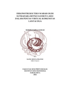 PRATIWI, RATRI SHINTA (2024) DEKONSTRUKSI TEKS WABAH OLEH SUTRADARA RETNO SAYEKTI LAWU DALAM PENTAS VIRTUAL KOMUNITAS LANTAI DUA. S1 thesis, ISI Surakarta.