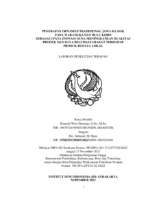 Wasi Darmojo, Kuntadi (2022) PENERAPAN ORNAMEN TRADISIONAL JAWA KLASIK PADA WARANGKA DAN HULU KERIS SEBAGAI UPAYA INOVASI GUNA MENINGKATKAN KUALITAS PRODUK DAN DAYA BELI MASYARAKAT TERHADAP PRODUK BUDAYA LOKAL. Other. ISI Surakarta, Surakarta.