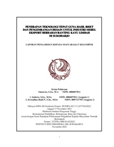 PENERAPAN TEKNOLOGI TEPAT GUNA HASIL RISET DAN PENGEMBANGAN DESAIN UNTUK INDUSTRI MEBEL EKSPORT BERBAHAN RANTING KAYU LIMBAH DI SUKOHARJO LAPORAN PENGABDIAN KEPADA MASYARAKAT KELOMPOK