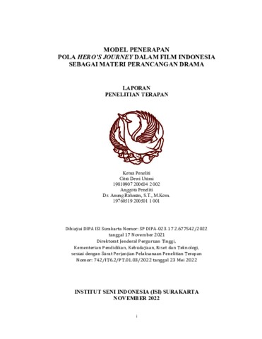 Utami, Citra Dewi (2022) MODEL PENERAPAN POLA HERO’S JOURNEY DALAM FILM INDONESIA SEBAGAI MATERI PERANCANGAN DRAMA. Project Report. ISI Surakarta, Surakarta. (Unpublished)