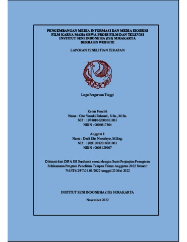 Rahmad, Cito Yasuki (2022) PENGEMBANGAN MEDIA INFORMASI DAN MEDIA EKSIBISI FILM KARYA MAHASISWA PRODI FILM DAN TELEVISI INSTITUT SENI INDONESIA (ISI) SURAKARTA BERBASIS WEBSITE. Project Report. ISI Surakarta, Surakarta. (Unpublished)