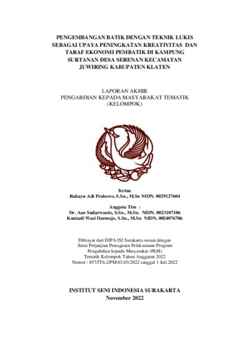 Desa Serenan tepatnya di Kampung Surtanan terdapat kelompok pembatik yang mempunyai kegiatan nyerat (menulis) kain dengan menggunakan malam batik. Aktifitas ini dilakukan sesuai pesanan dari pengusaha batik dari beberapa daerah di Solo dan Yogyakarta. Pesanan berupa seratan (tulisan/gambar) motif yang sudah ditentukan oleh pengusaha batik. Dari observasi awal diketahui, terdapat beberapa permasalahan yang menjadi kendala dan terjadi pada mitra PKM ini, antara lain : Kelompok Pembatik Surtanan yang diketuai oleh Sri Suyamti ini awalnya merupakan program pengembangan masyarakat daerah yang berada dalam binaan pengusaha batik dan pemerintah Kabupaten. Namun seiring perkembangan produksi batik di tiap produsen batik yang berbeda-beda, maka kelompok ini cenderung menunggu dan tidak mempunyai motivasi pengembangan kreativitasnya. Selain itu terdapat permasalahan lain yaitu masih kurangnya strategi produksi dan pemasaran. Berpijak dari permasalahan tersebut maka tim PKM ISI Surakarta ingin melakukan kegiatan PKM Tematik Kelompok, dengan target kelompok pembatik Surtanan. Fokus dari kegiatan PKM ini lebih diarahkan pada pada aspek peningkatan kualitas produksi dan pemasaran. Dengan dilakukan beberapa pendekatan seperti pembuatan pendampingan berbasis pengembangan produksi melalui teknis lukis. Kemudian dilakukan penguatan sumber daya manusia dan pemanfaatan teknologi tepat guna, yang diharapkan dapat meningkatkan variasi produksi batik sehingga dapat meningkatkan pasar dan daya saing usaha.
