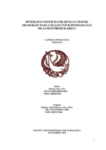 Afrizal, Afrizal (2022) PENERAPAN MOTIF BATIK DENGAN TEKNIK XILOGRAFI PADA LOGAM UNTUK PENINGKATAN NILAI SENI PRODUK KRIYA. Project Report. ISI Surakarta, SURAKARTA. (Unpublished)