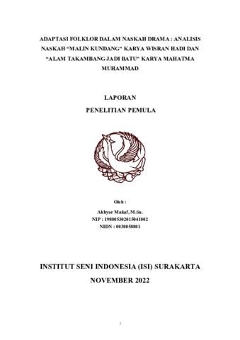 Makaf, Akhyar (2022) ADAPTASI FOLKLOR DALAM NASKAH DRAMA : ANALISIS NASKAH “MALIN KUNDANG” KARYA WISRAN HADI DAN “ALAM TAKAMBANG JADI BATU” KARYA MAHATMA MUHAMMAD. Project Report. Institut Seni Indonesia Surakarta, Surakarta. (Unpublished)