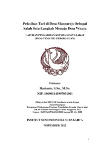 Hartanto, Hartanto (2022) Pelatihan Tari di Desa Manyarejo Sebagai Salah Satu Langkah Menuju Desa Wisata. Project Report. ISI Surakarta. (Unpublished)