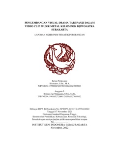 Kiswanto, Kiswanto and Manggala, Bondan Aji (2022) PENGEMBANGAN VISUAL DRAMA TARI PANJI DALAM VIDEO CLIP MUSIK METAL KELOMPOK DJIWOASTRA SURAKARTA. Project Report. Fakultas Seni Pertunjukan ISI Surakarta. (Unpublished)