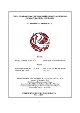 Purwasari, Endang and Jannati R.N.Y, Roudlotul and Azizah, Maharani Nur (2023) “SPILL LINK DONG KAK!”: FENOMENA BELANJA MELALUI TIKTOK DI KALANGAN MUDA SURAKARTA. Project Report. Institut Seni Indonesia Surakarta, Surakarta. (Unpublished)