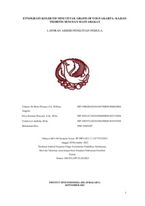 Wirajati, Yohannes De Britto and Waryanti, Dessy Rachma and Andhika, Yuditia Leo and Irfan, Muhammad (2023) ETNOGRAFI KOLEKTIF SENI CETAK GRAFIS DI YOGYAKARTA: KAJIAN TEORITIS SENI DAN MASYARAKAT. Project Report. Institut Seni Indonesia Surakarta, Surakarta. (Unpublished)