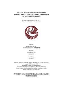 Sriyadi, Sriyadi and Sari, Yoni Wulan and Elvina, Luh (2023) DESAIN KOSTUM DAN VISUALISASI STATUS SOSIAL DALAM KARYA TARI JAWA DI MANGKUNEGARAN. Project Report. Institut Seni Indonesia Surakarta, Surakarta. (Unpublished)