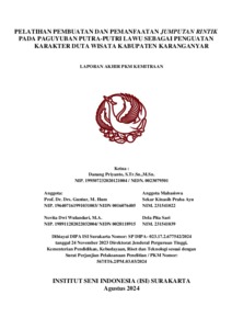 Priyanto, Danang (2024) PELATIHAN PEMBUATAN DAN PEMANFAATAN JUMPUTAN RINTIK PADA PAGUYUBAN PUTRA-PUTRI LAWU SEBAGAI PENGUATAN KARAKTER DUTA WISATA KABUPATEN KARANGANYAR. Project Report. Fakultas Seni Rupa dan Desain, Fakultas Seni Rupa dan Desain. (Unpublished)