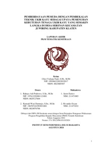 Nadi, Chici Yuliana (2024) PEMBERDAYAAN PEMUDA DENGAN PEMBEKALAN TEKNIK UKIR KAYU SEBAGAI UPAYA PEMENUHAN KEBUTUHAN TENAGA UKIR KAYU YANG SEMAKIN LANGKA DI DESA SERENAN KECAMATAN JUWIRING KABUPATEN KLATEN. Project Report. Fakultas Seni Rupa dan Desain, Fakultas Seni Rupa dan Desain. (Unpublished)