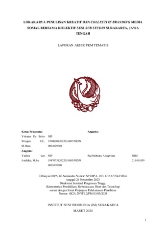 Wirajati, Yohanes De Britto (2024) LOKAKARYA PENULISAN KREATIF DAN COLLECTIVE BRANDING MEDIA SOSIAL BERSAMA KOLEKTIF SENI SUB STUDIO SURAKARTA, JAWA TENGAH. Project Report. Fakultas Seni Rupa dan Desain, Fakultas Seni Rupa dan Desain. (Unpublished)