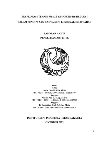 Gozali, Amir (2022) EKSPLORASI TEKNIK IMAGE TRANSFER dan REDUKSI DALAM PENCIPTAAN KARYA SENI LUKIS KALIGRAFI ARAB. Project Report. ISI SURAKARTA, Surakarta. (Unpublished)
