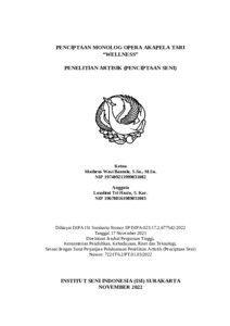 Bantolo, Matheus Wasi (2022) PENCIPTAAN MONOLOG OPERA AKAPELA TARI “WELLNESS”. Project Report. ISI Surakarta. (Unpublished)