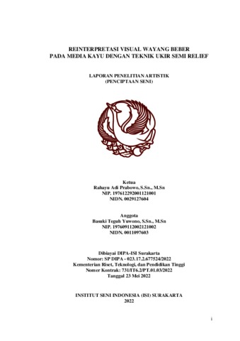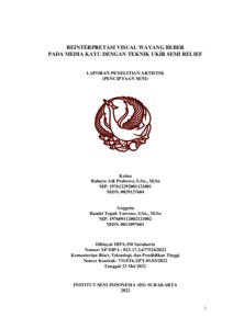 Prabowo, Rahayu Adi (2022) REINTERPRETASI VISUAL WAYANG BEBER PADA MEDIA KAYU DENGAN TEKNIK UKIR SEMI RELIEF. Project Report. ISI Surakarta. (Unpublished)