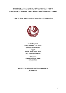 Novianto, Wahyu and Makaf, Akhyar and 'Adhim, Loubna Dzakiyya (2024) DIGITALISASI NASKAH DAN DOKUMENTASI VIDEO PERTUNJUKAN TEATER GAPIT TAHUN 1980-AN DI SURAKARTA. Project Report. Fakultas Seni Pertunjukan ISI Surakarta. (Unpublished)