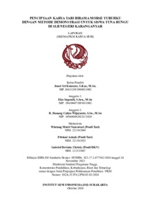 Kuncoro, Joned Sri and Supendi, Eko and Wijayanto, R Danang Cahyo (2024) PENCIPTAAN KARYA TARI BIRAMA MORSE TUBUHKU DENGAN METODE DEMONSTRASI UNTUK SISWA TUNA RUNGU DI SLB NEGERI KARANGANYAR. Project Report. Fakultas Seni Pertunjukan ISI Surakarta. (Unpublished)