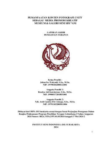 Wahyudi, Johan Ies and Kurniawan, Rendya Adi and Atmaja, Nur Rahmat Ardi Candra Dwi (2024) PEMANFAATAN KONTEN FOTOGRAFI UNITY SEBAGAI MEDIA PROMOSI KREATIF MUSEUM & GALERI SENI SBY*ANI. Project Report. ISI Surakarta, Surakarta. (Unpublished)