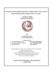 Rizqi, Faricha and Rosalina, Neni Nurul and Pertiwi, Ayu Ratna and Indraswari, Niken (2024) Penerapan Lanksap Linguistik pada Interior Sekolah sebagai Authentic Material untuk Pembelajaran Bahasa Inggris di SMA N 1 Sragen. Project Report. Institut Seni Indonesia Surakarta, Surakarta. (Unpublished)