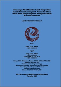 Alat musik tradisional seperti rebab dan kendang memiliki nilai artistik dan budaya yang kaya, namun sulit bagi pemula untuk mempelajari dan mengembangkan keterampilan bermain alat musik ini tanpa panduan yang tepat. Penelitian terapan ini bertujuan untuk merancang modul pelatihan yang efektif untuk pemula dalam mengembangkan keterampilan bermain rebab dan kendang, dengan pendekatan praktis yang fokus pada teknik memproduksi suara dan pengenalan teknik genderan. Penelitian ini menggunakan metode penelitian yang meliputi studi literatur, pengumpulan data primer melalui observasi langsung dan wawancara dengan pemain rebab dan kendang berpengalaman, serta survei kepada pemula yang tertarik mempelajari alat musik ini. Berdasarkan hasil penelitian, modul pelatihan dirancang dengan langkah-langkah yang jelas dan terstruktur, termasuk contoh latihan yang relevan. Modul pelatihan ini bertujuan untuk memberikan pemahaman mendalam tentang teknik memproduksi suara rebab dan kendang serta pengenalan yang baik terhadap teknik genderan. Modul tersebut juga mempertimbangkan kebutuhan dan tingkat keterampilan pemula, dengan mengintegrasikan pendekatan praktis dalam pengajaran dan memberikan contoh latihan yang dapat diterapkan. Diharapkan penelitian ini dapat memberikan kontribusi dalam melestarikan dan mengembangkan warisan budaya musik tradisional, serta memperkaya pengalaman pendidikan musik di lingkungan perkuliahan. Modul pelatihan yang dirancang dapat digunakan sebagai panduan yang komprehensif untuk pemula yang tertarik mempelajari dan mengembangkan keterampilan bermain rebab dan kendang dalam konteks musik tradisional.