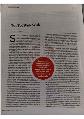 Setiawan, Aris (2025) Tot Tot Wuk Wuk. Majalah Tempo. p. 104. ISSN -