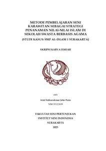 Putra, Arief Fathurrahman John (2025) METODE PEMBELAJARAN SENI KARAWITAN SEBAGAI STRATEGI PENANAMAN NILAI-NILAI ISLAM DI SEKOLAH SWASTA BERBASIS AGAMA (STUDI KASUS: SMP AL-ISLAM 1 SURAKARTA). S1 thesis, ISI SURAKARTA.