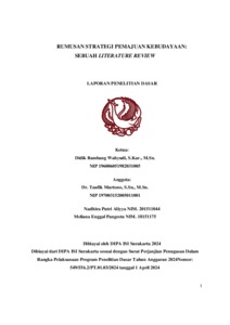 Wahyudi, Didik Bambang and Murtono, Taufik and Aliyya, Nadhira Putri and Pangestu, Meliana Enggal (2024) RUMUSAN STRATEGI PEMAJUAN KEBUDAYAAN: SEBUAH LITERATURE REVIEW. Project Report. ISI Surakarta, Surakarta.