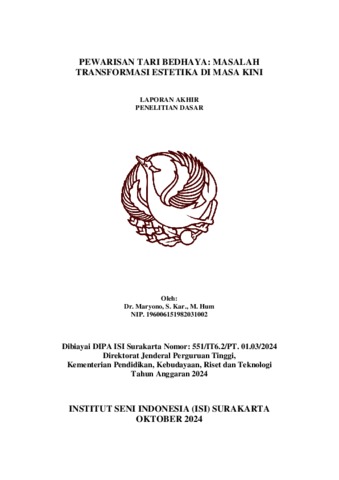 Maryono, Maryono (2024) PEWARISAN TARI BEDHAYA: MASALAH TRANSFORMASI ESTETIKA DI MASA KINI. Project Report. ISI Surakarta, Surakarta.