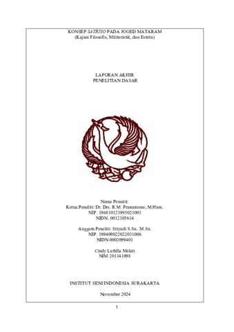 Pramutomo, R.M. and Sriyadi, Sriyadi and Melati, Cindy Luthfia (2024) KONSEP SATRIYO PADA JOGED MATARAM (Kajian Filosofis, Militeristik, dan Estetis). Project Report. ISI Surakarta, Surakarta. (Unpublished)