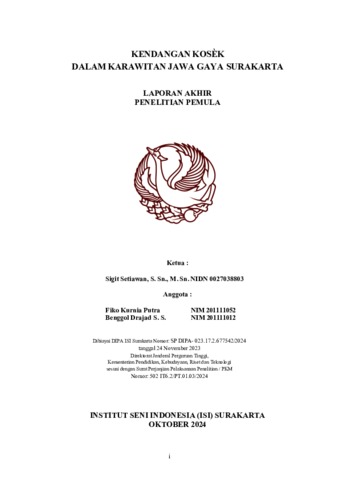 Setiawan, Sigit (2024) KENDANGAN KOSÈK DALAM KARAWITAN JAWA GAYA SURAKARTA. Project Report. ISI Surakarta. (Unpublished)